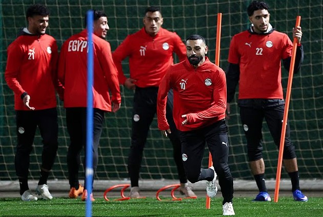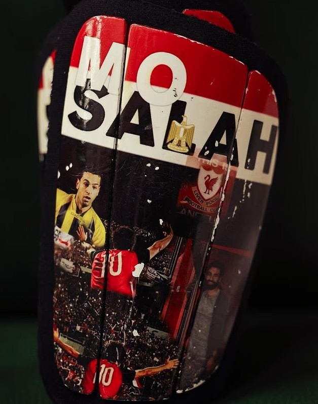 萨拉赫非洲杯使用定制护腿板,含有埃及和利物浦安菲尔德元素。