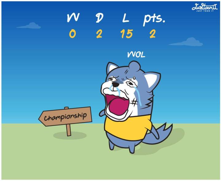 狼队正在急剧下滑,面临降级至英冠联赛的风险。 可怜的狼队 ☠️ 漫画作者:泰国艺术家 Kaew Justtoonit。